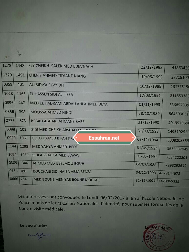 أعلن اليوم في العاصمة الموريتانية نواكشوط، عن نتائج مسابقة ضباط الشرطة.