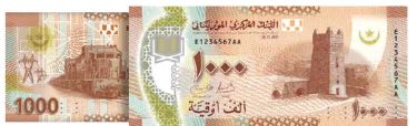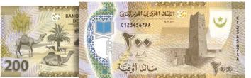 و500 (أي 5000 من العملة الحالية)، و1000، وتساوي 100000، وهي فئة لم تكن ضمن المعلمة المتداولة حاليا. وتوقع محافظ البنك المركزي الموريتاني عزيز ولد الداهي أن يساهم هذا الإجراء في رفع نسبة المصرفية في البلاد، والتي تتجاوز الآن 14 إلى 15 ,حسب الاخبار.