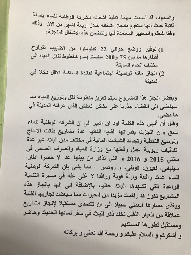 وفي حفل بهيج بالمناسبة , القى السيد/ الشيخ ولد قل كلمة شرح فيها أهداف المشروع وطرق تمويله , وآجال انتهاء , حيث جاء في كلمته ما يلي :