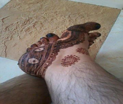 وهو في زي نسائي ويخضب أيديه وأرجله بالحناء مما أثار موجة من الاشمئزاز والسخط , حيث تم إلقاء القبض عليه وإيداعه في السجن.