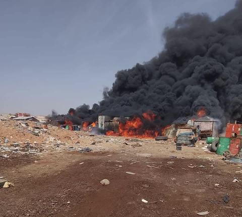 وسارعت فرق الحماية المدنية إلى موقع الحادث لمحاولة السيطرة على الحريق، غير أن الوضعية لا تزال خارج السيطرة بشكل كامل حتى الآن، في ظل صعوبة التدخل المباشر بسبب طبيعة المواد القابلة للاشتعال.