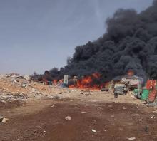 اندلاع، حريق، هائل، داخل، نقطة، تستعمل، لتخزين، وبيع، المحروقات، بازويرات